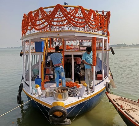 In Varanasi, A Ride on a Barge Boat is an Excellent Way to Enjoy Both Pleasure and Convenience. These Boats are Much Larger, More Stable, and More Comfortable Than Ordinary Boats.